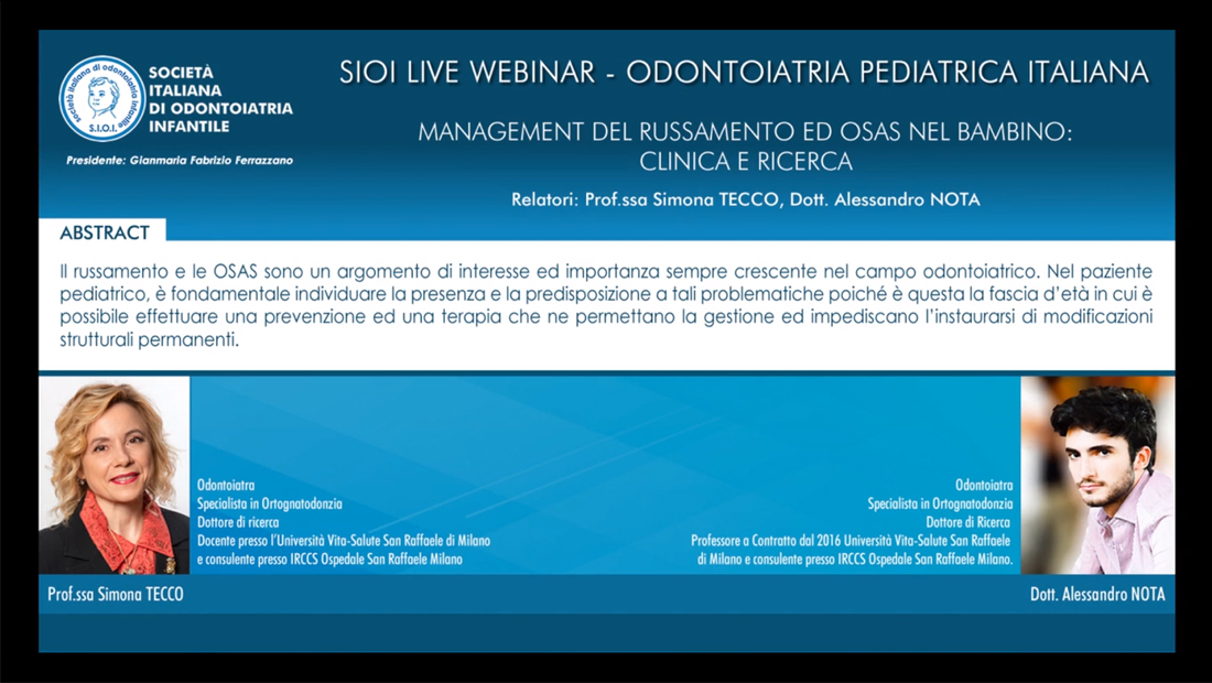 Home webinar: Disturbi del sonno nella popolazione Pediatrica e correlazione con le malocclusioni tecco-nota